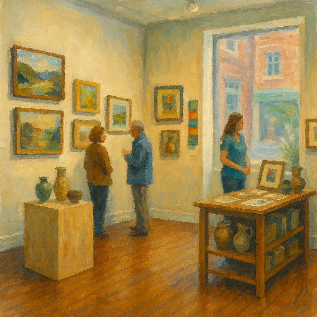 The Artists at the Works Co-op is a curated gallery space inside the Berkeley Art Works where local and regional artists showcase and sell their work year-round. The Co-op represents a rotating group of talented visual artists working in a variety of media, from painting and photography to ceramics, jewelry, and fiber art. Visitors can view and purchase original artwork directly from the creators.